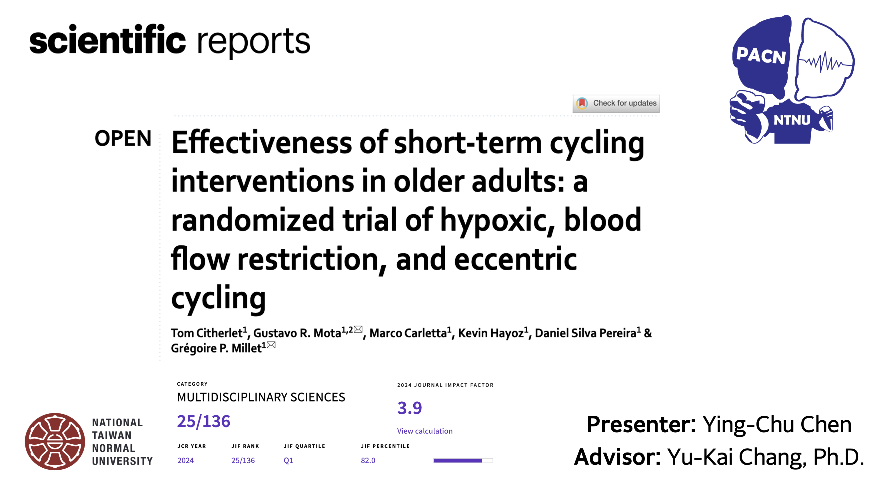 Journal Meeting: Effectiveness of short-term cycling interventions in older adults
